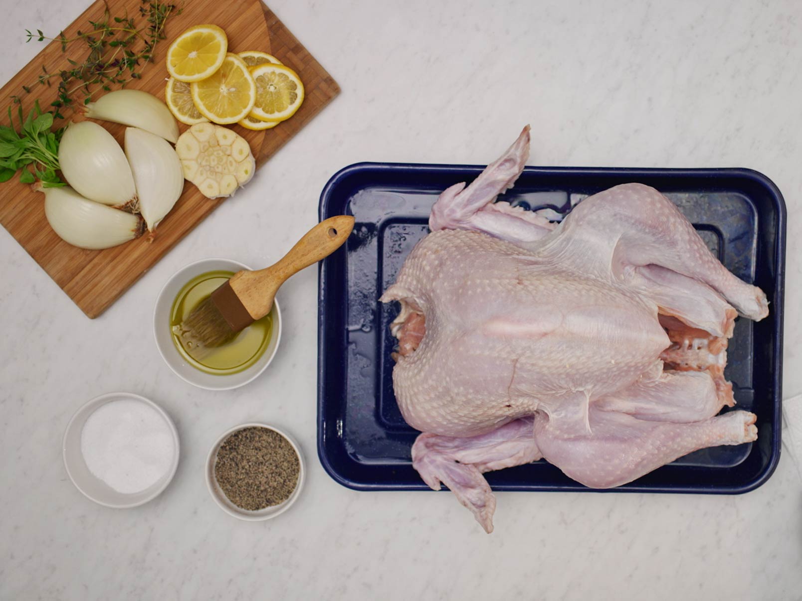 - Once your turkey has been brined, rinsed in cold water and patted dry with paper towels, it’s time to season it inside and out. Place your choice of chopped aromatics inside the cavity of your turkey.