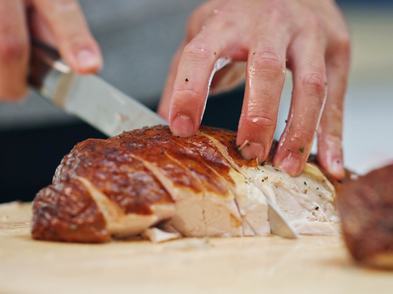 - For easy carving, remove each side of the breast in one piece, then slice across the grain.