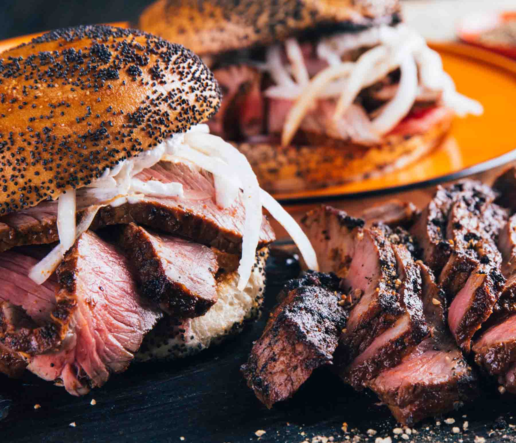 Bring grilled pit beef sandwiches with fresh horseradish sauce and your favorite toppings to the next barbecue.
