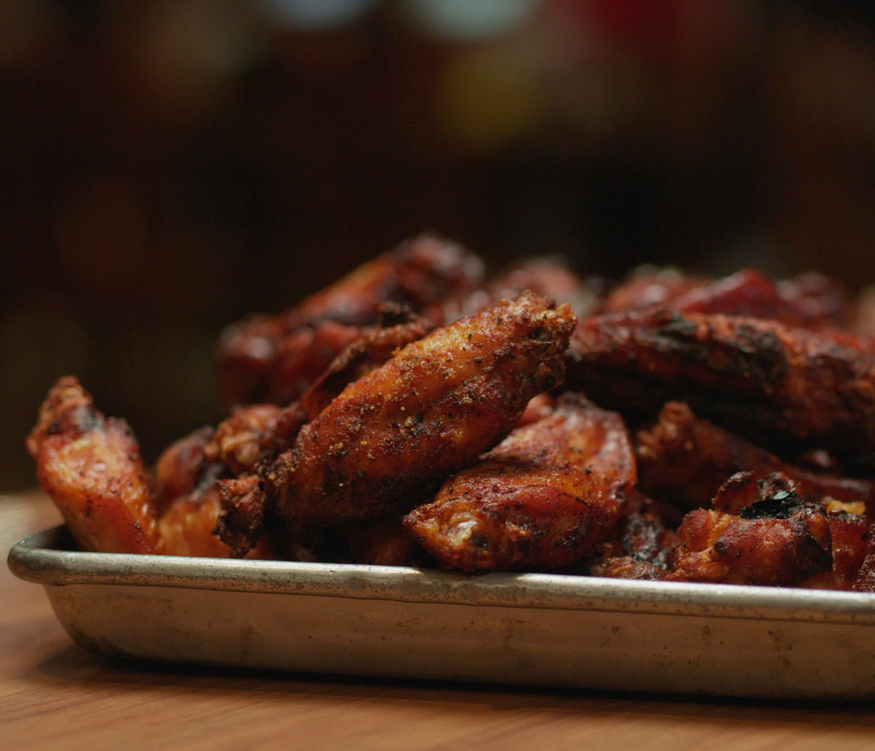 Put the chicken wings over indirect heat, away from the coals, and close the grill lid. Cook until the skin browns and crisps, and the juices run clear, about 35 to 45 minutes.