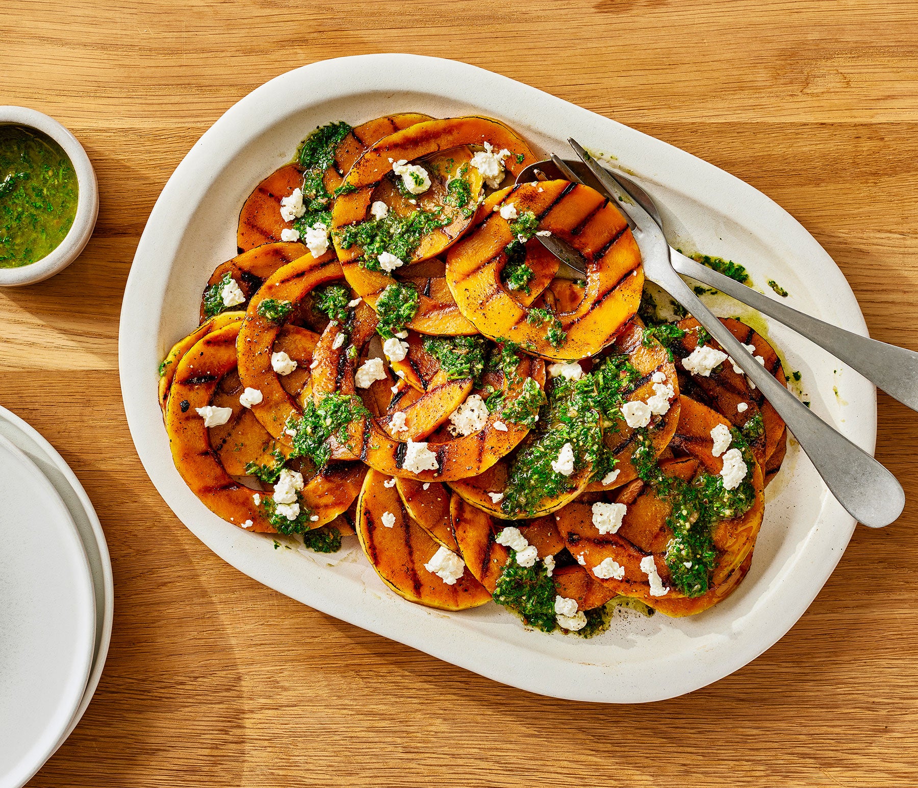 Grilled Butternut Squash with Goat Cheese and Chimichurri Dressing