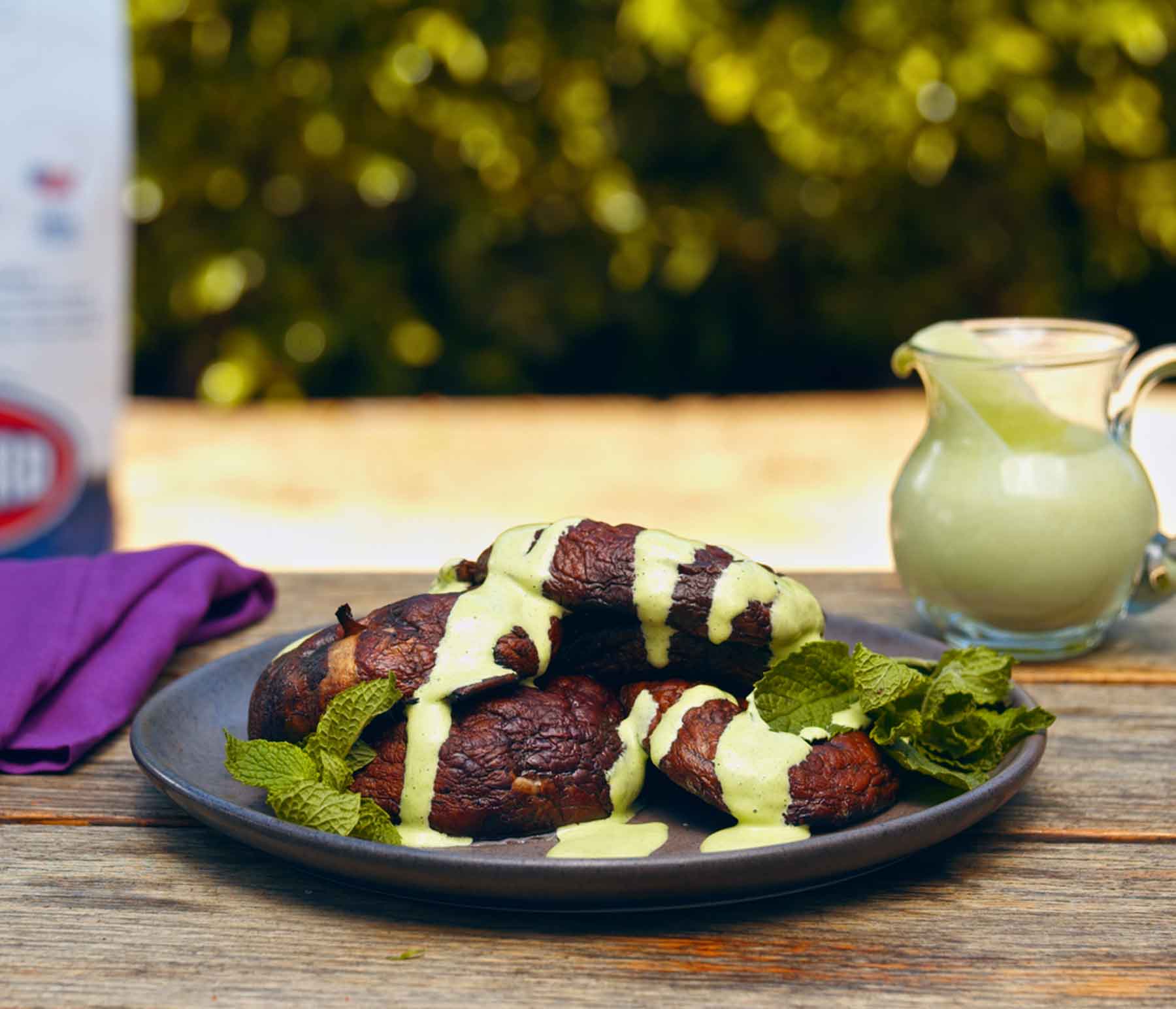 If you love cilantro, jalapeño and mint and haven’t tried Aji Verde sauce, this is the recipe for you. Drizzled on top of marinated grilled portobello caps, this light dish doesn’t skimp on flavor.