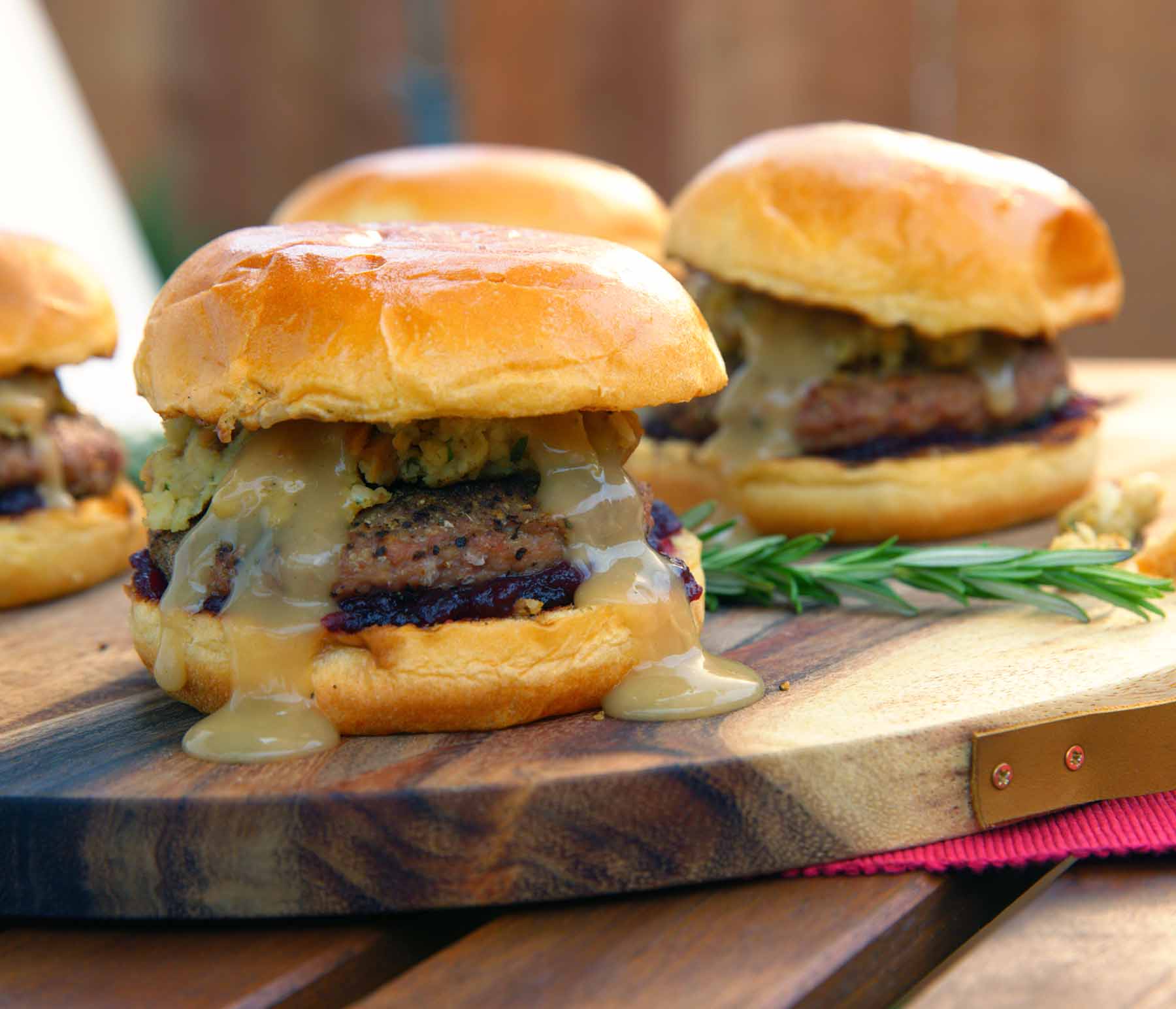 Place your turkey burgers on the bottom buns, drizzle them with gravy, add the top bun and serve immediately.